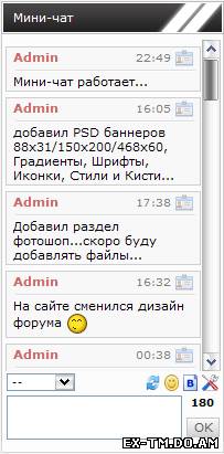 Скрипт Красивый мини-чат для UcozАвтор: Aninew | от 11.10.2012 | посмотрело: 292