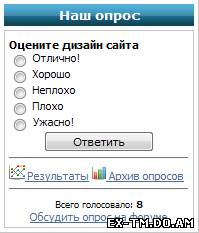 ![]() Установка: Код в форме опросов заменить на вот такой вот: Код <DIV style="FONT-FAMILY: Tahoma,Arial">